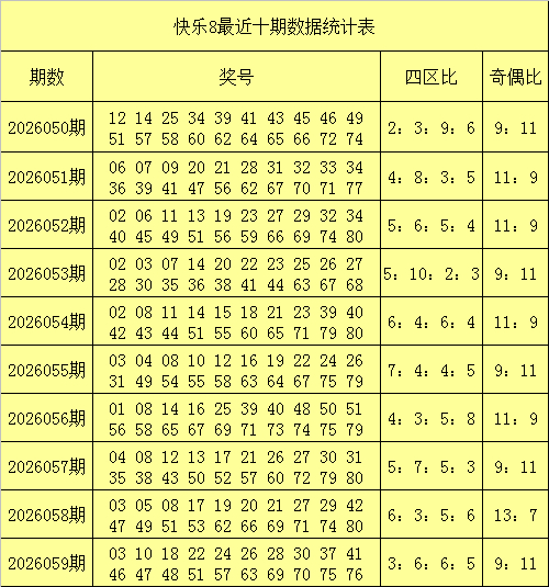 第三区【41-60】分析:上期第三区走温出现6个奖号:41、46、47、48、51、57,4个奇数,2个偶数,在贯穿5期开奖中,该区开出13个奇数号码和12个偶数,走势相对均衡,与上期比拟,本期看好该区升温出现8个奖号,妥当关怀该区奇数43、49、53、57、59,谨防偶数号码50、52、54。